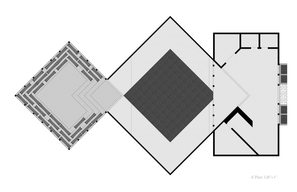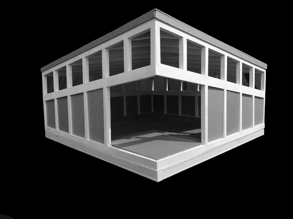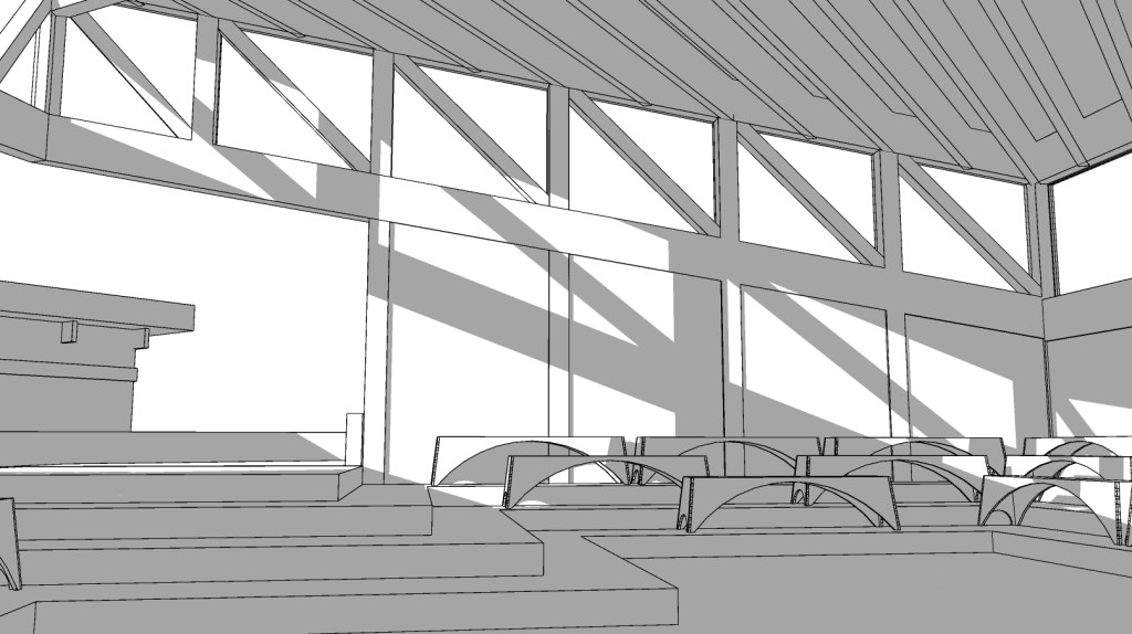 The rest of the semester was spent individually designing a meeting house which features the previously designed bench. In the meeting house light is let in from clerestory eliminating outside distractions and focusing congregants’ thoughts inwards to themselves and others currently meeting.